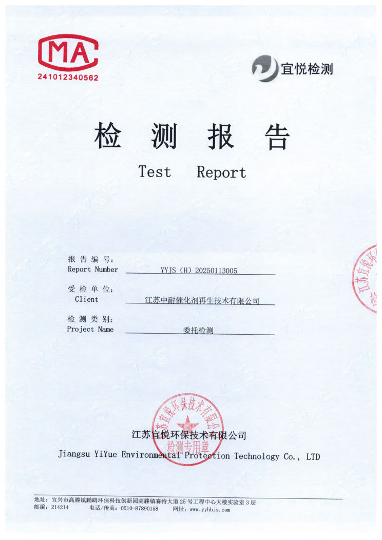 江蘇中耐催化劑再生技術(shù)有限公司廢氣、噪聲的檢測報告(采樣日期20250113)