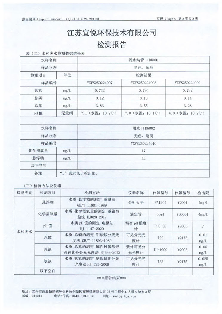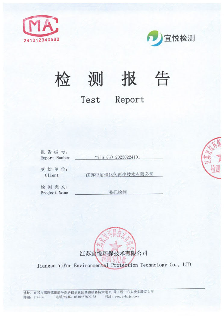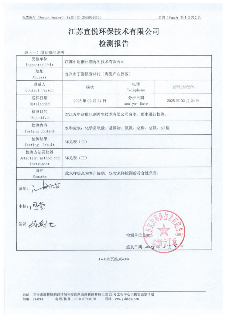 江蘇中耐催化劑再生技術(shù)有限公司廢水、雨水的檢測(cè)報(bào)告(采樣日期20250224)