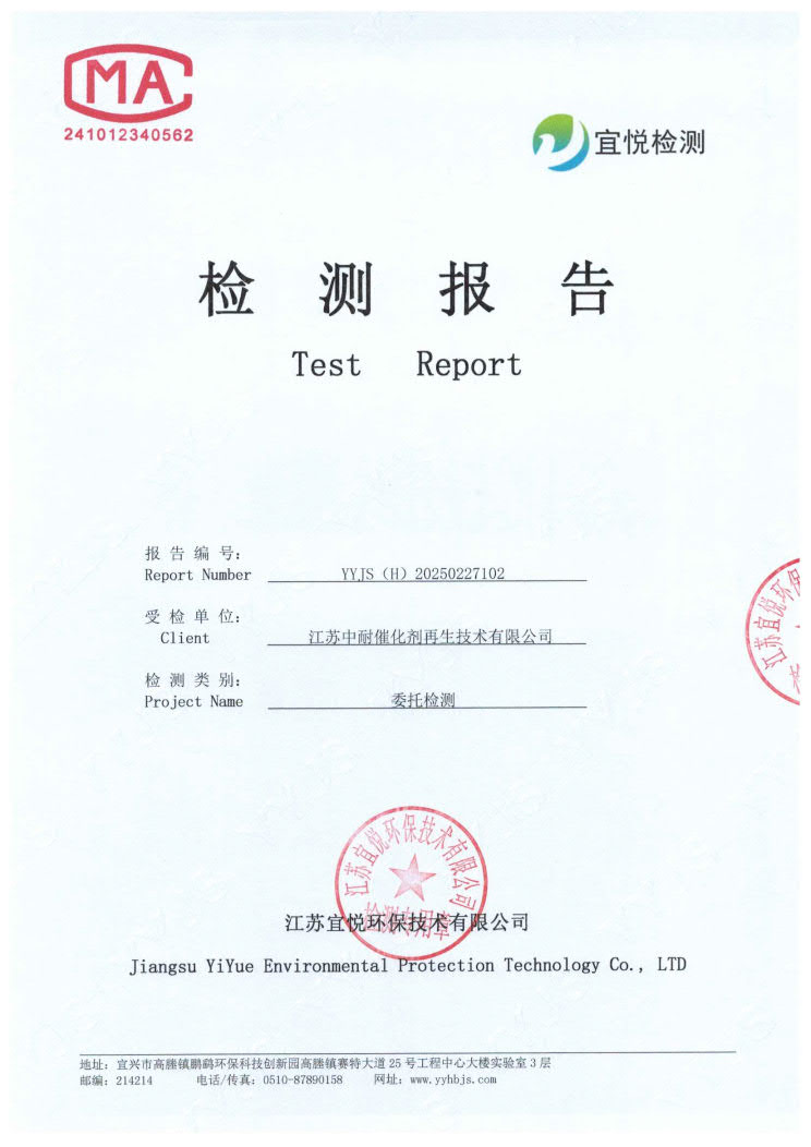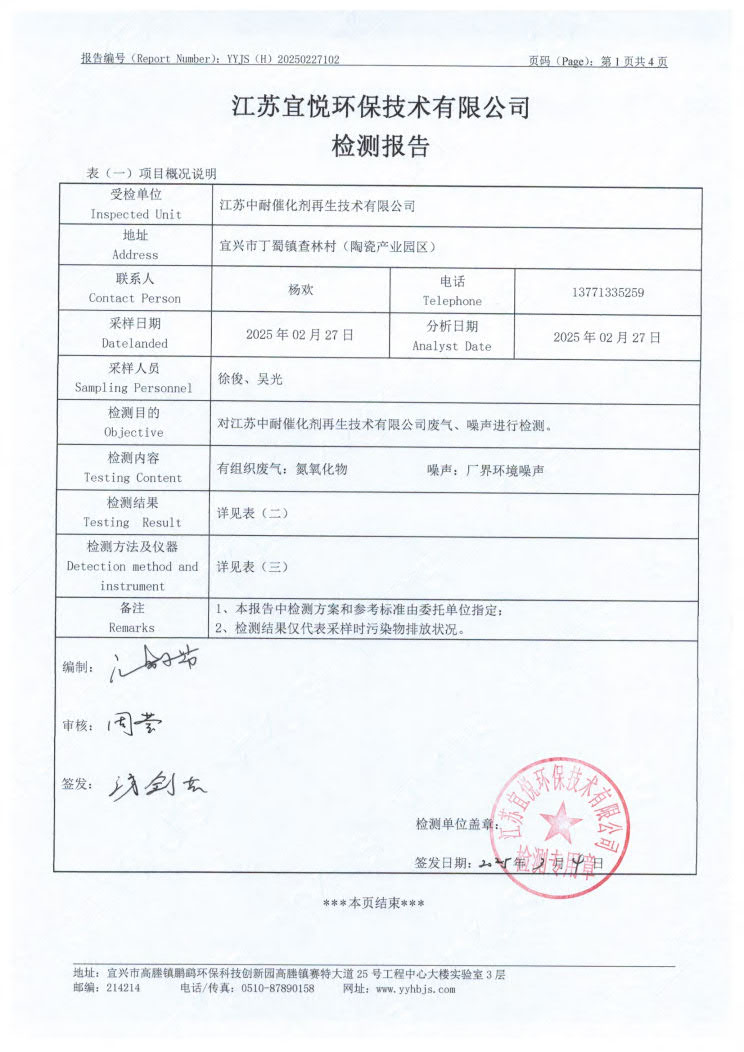 江蘇中耐催化劑再生技術(shù)有限公司廢氣、噪聲的檢測(cè)報(bào)告(采樣日期20250227)
