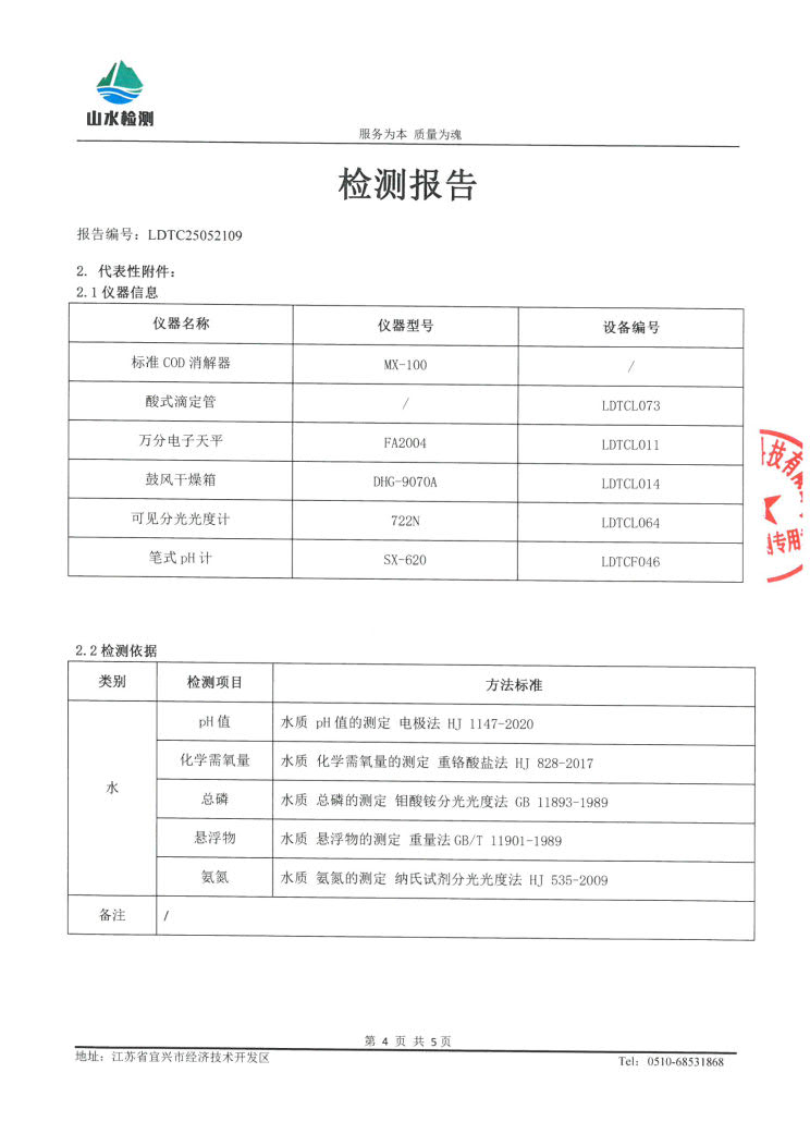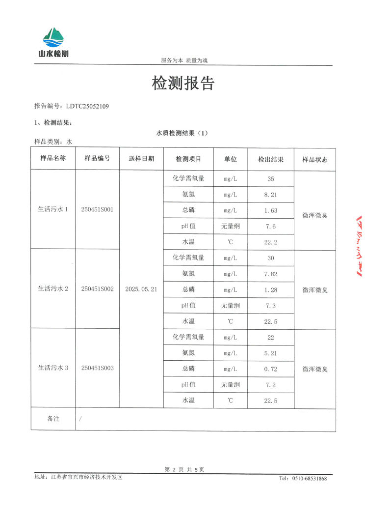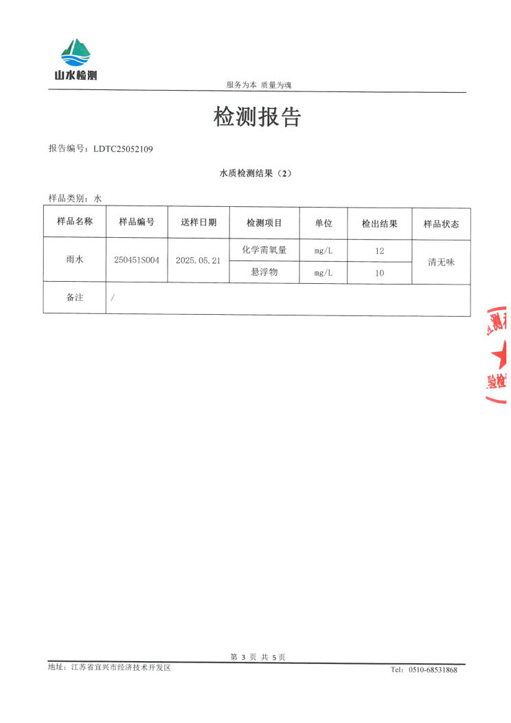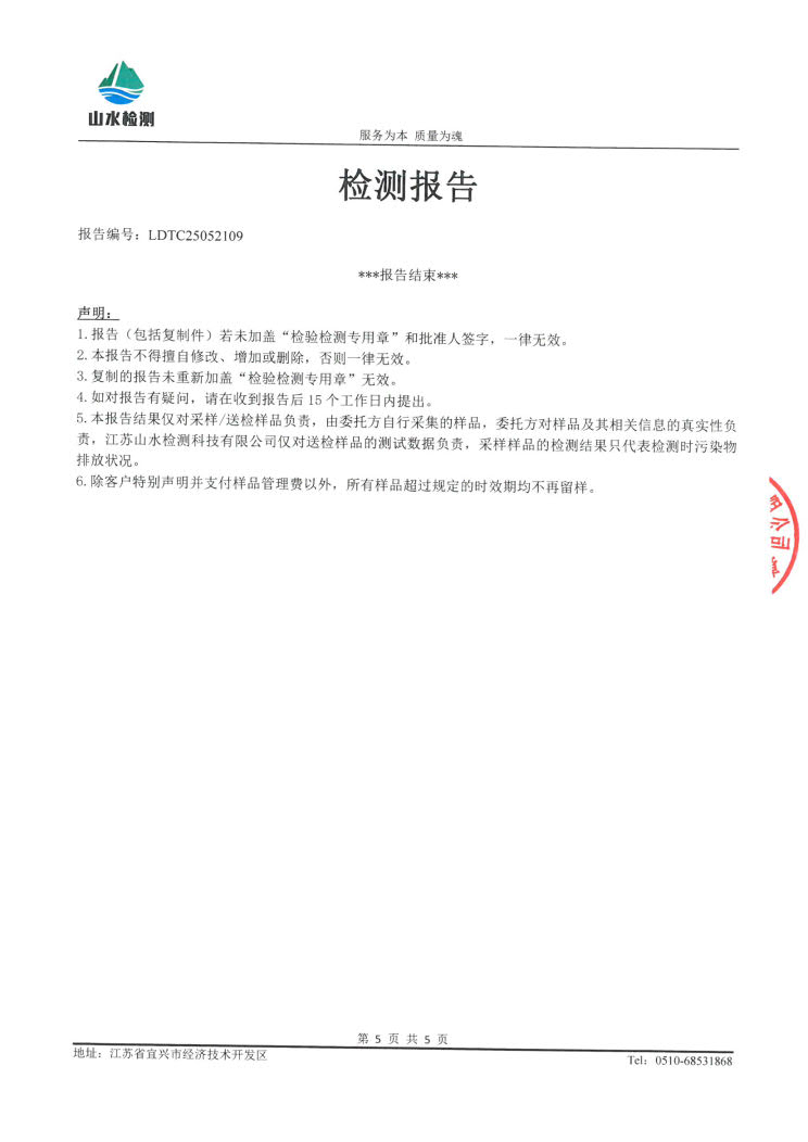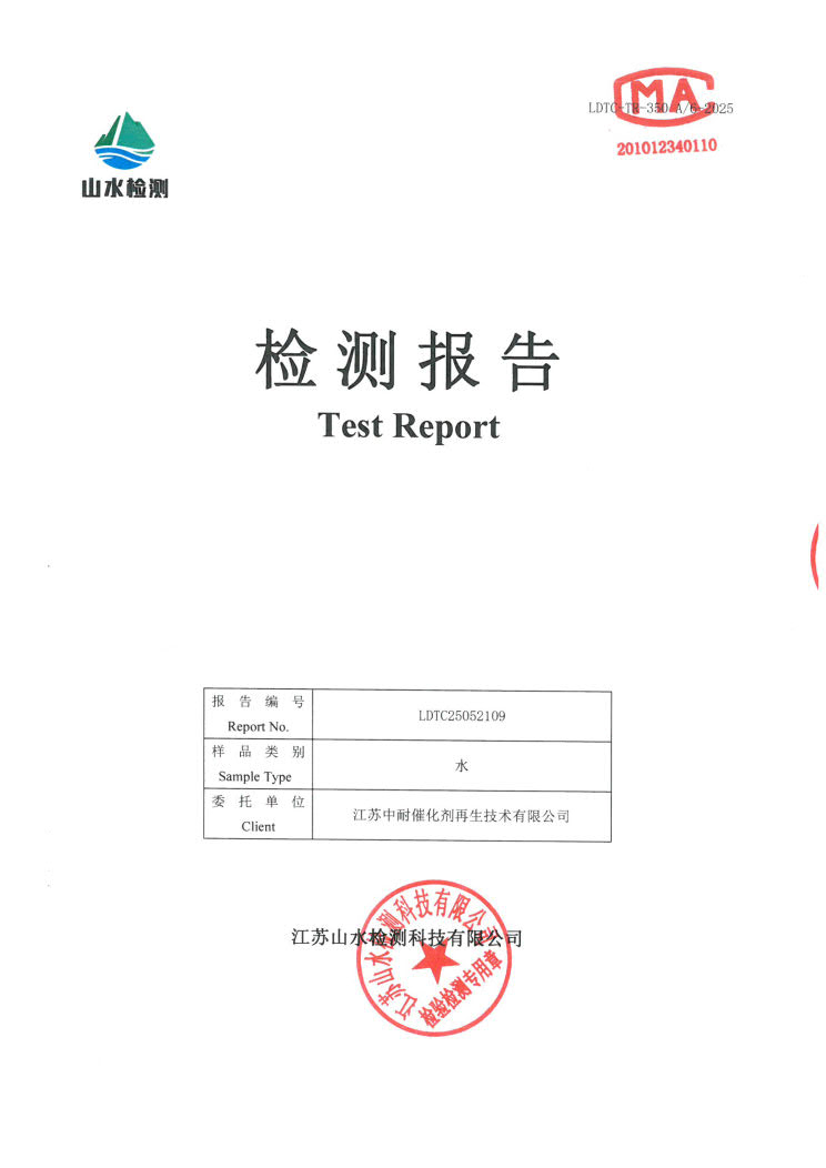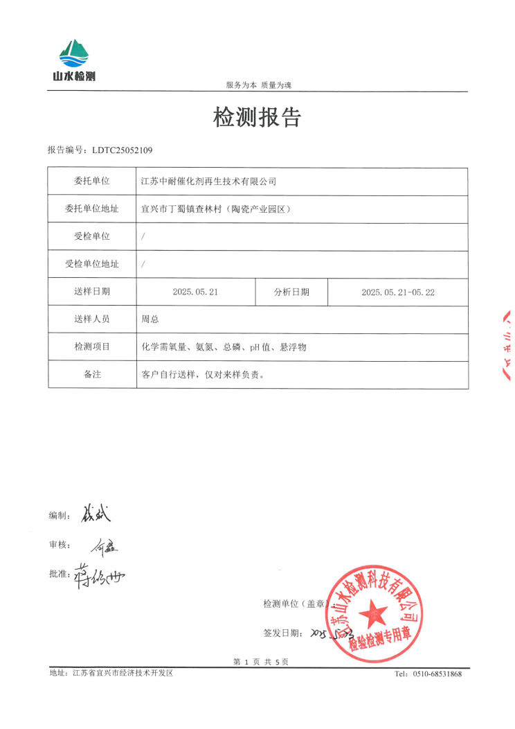 江蘇中耐催化劑再生技術(shù)有限公司廢水的檢測報告(采樣日期20250521)